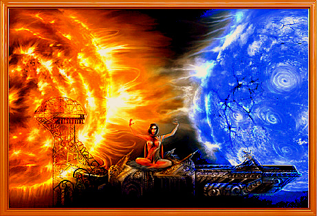 Ame means heaven. Yudzuru, or yuzuru, translates as bestow. Next we have hi meaning sun. Ame-no-sagiri translates as heaven of mist, or heavenly mist. Kuni means land of course. The latter two phrases are to be taken as one, heavenly-mist-land. A heavenly-mist-land is what we call a dimension. So far, the first part of the name, Ame-yudzuru-hi-ame-no-sagiri kuni means Heaven bestows sun-heavenly-mist-land. The next phrase, yudzuru (bestow) tsuki (moon) kuni-no-sagiri (land of mist) no Mikoto, helps us come to the full meaning of a certain phenomena that the ancients recognized. This can be determined the term sa-giri, which appears in the name.