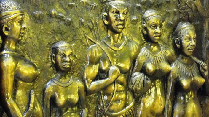 There are certain myths appearing in the Nihon Shoki, which describes the Negritos of Japan, who would later take refuge in the mountains and on occasion are described as tengu in some accounts. One such character appears on Emperor Jimmu’s discovery of Japan, is popularly known as Nagasunehiko (lit. “the long-legged man”).