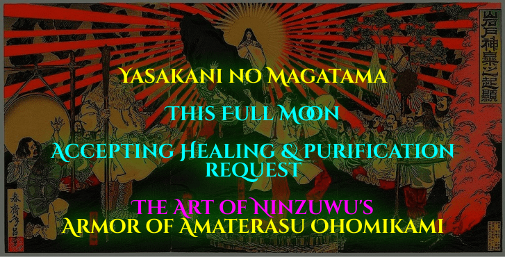 The Nyarzirian calendar associates this day with the 33 Hexagram and the Vasuh letters Shki and Phe. This is an excellent time for spiritual renewal and introspection. The Yasakani no Magatam is a healing ritual that is offered by Ninzuwu as a monthly blessing. It is a specific exercise that derives from the Amenonuhoko Healing. If you are interested in receiving a blessing, please contact us or a Ninzuwu for further details.